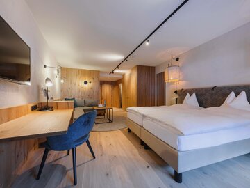 Il nostro tradizionale hotel 4 stelle superior è incorniciato da maestose montagne alpine. Potrete ammirarle non solo durante le vostre escursioni e tour in bici, ma anche facendo il bagno nella Sky Pool all’aperto o dal balcone panoramico della vostra camera. Lasciatevi viziare e ispirare dalla nostra cucina premiata, dalla calorosa ospitalità e da indimenticabili MomentiAdler ricchi di emozione.